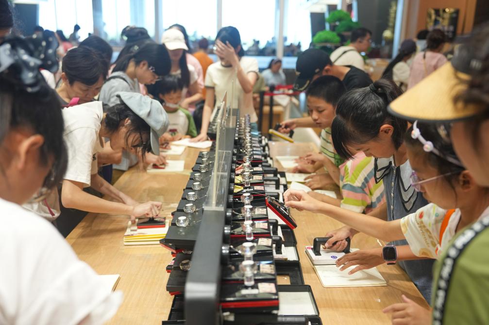 游客在湖南博物院博物館公園體驗(yàn)文創(chuàng)產(chǎn)品。新華社記者 薛宇舸 攝
