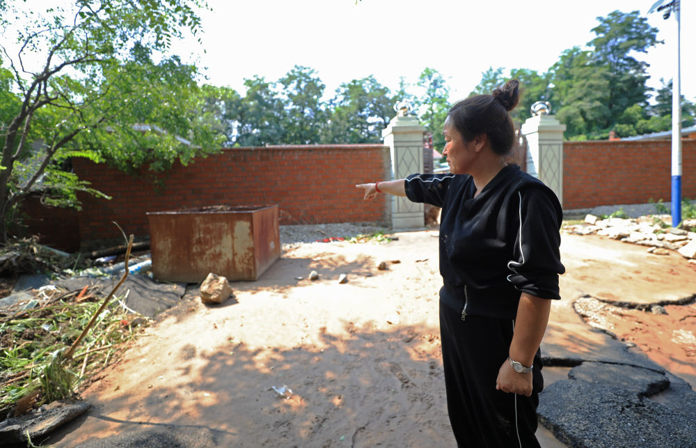 8月21日,在建昌縣黑山科鄉(xiāng)小臺(tái)子村,村婦聯(lián)干部臧春英講述李清學(xué)犧牲經(jīng)過。新華社記者 楊青 攝