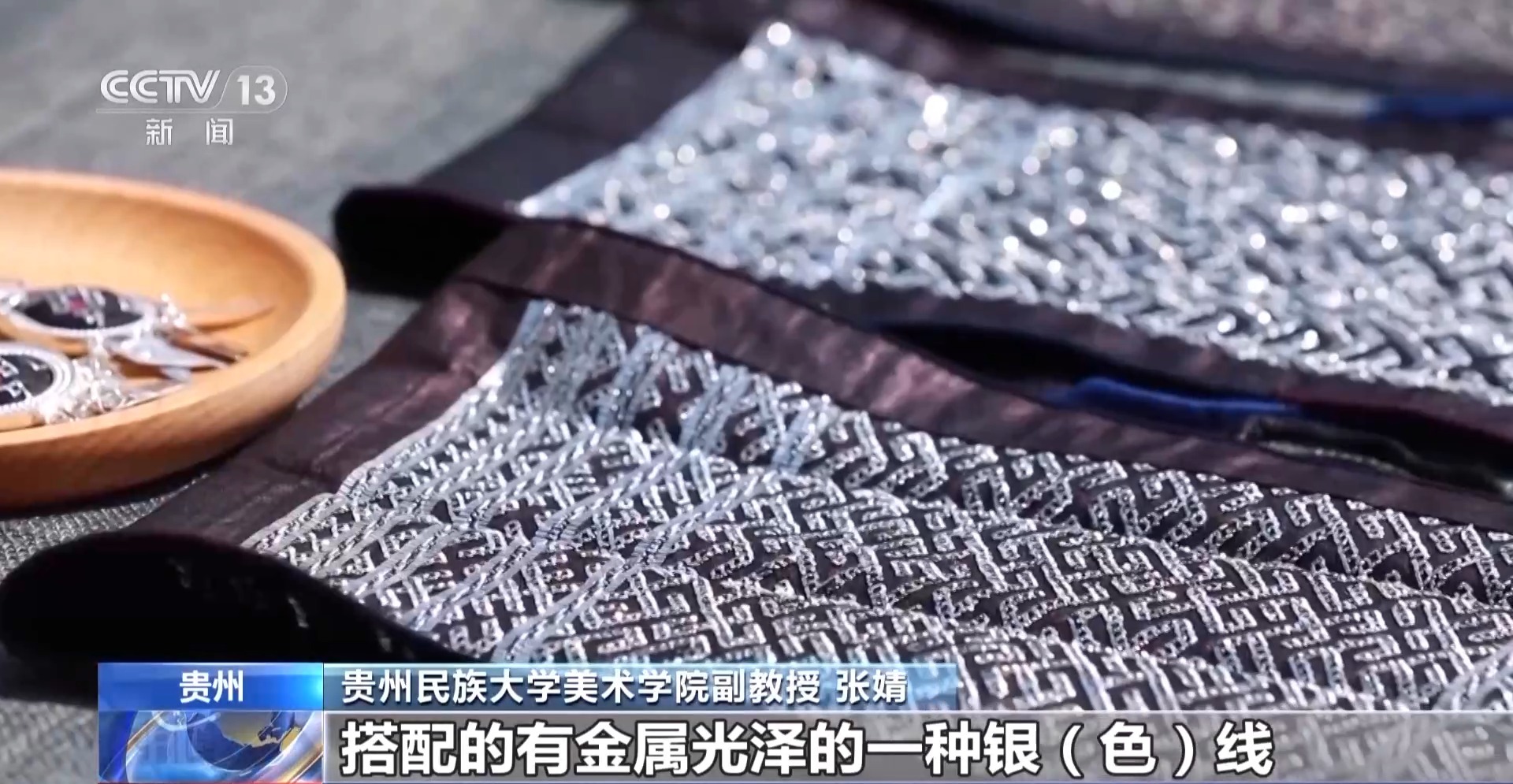 貴州民族大學(xué)美術(shù)學(xué)院副教授 張婧:在它的色調(diào)和質(zhì)感的對(duì)撞和對(duì)比下,使得劍河錫繡呈現(xiàn)一種少見(jiàn)的時(shí)尚感和現(xiàn)代感。