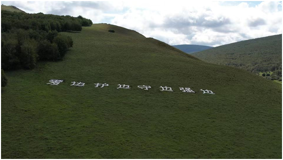 1984年7月,王玉發(fā)在阿爾山林業(yè)局林場(chǎng)工作期間,光榮地加入了中國(guó)共產(chǎn)黨。今年,王玉發(fā)迎來了加入中國(guó)共產(chǎn)黨的第40個(gè)年頭。為了慶祝這一特殊時(shí)刻,王玉發(fā)用1000余塊石磚堆砌出“愛民 護(hù)邊守邊 強(qiáng)邊”八個(gè)大字,成為山坡上一道壯觀的風(fēng)景線。