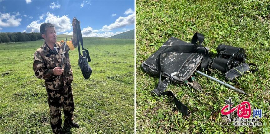王玉發(fā)放牧巡邊時(shí)帶的“裝備包”,里面裝著望遠(yuǎn)鏡、錐子、鉗子。中國(guó)網(wǎng)記者 吳佳潼 攝