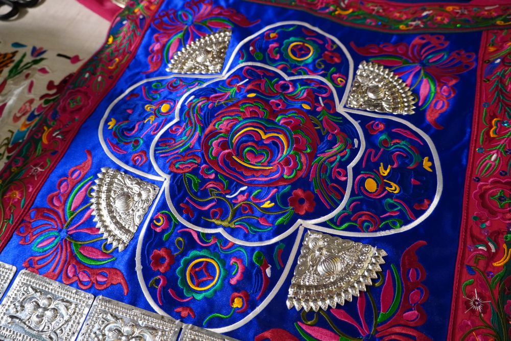 另一珍品是有“穿在身上的侗族文明史”之稱的侗族刺繡。在永濟橋上,31歲的覃桂珍正和兩位繡娘為手中的侗繡新作忙碌。作為集紡織、印染、剪紙、刺繡于一體的傳統(tǒng)工藝,侗繡技藝延綿千年,已被列入國家級非物質(zhì)文化遺產(chǎn)名錄及國家傳統(tǒng)工藝振興目錄。