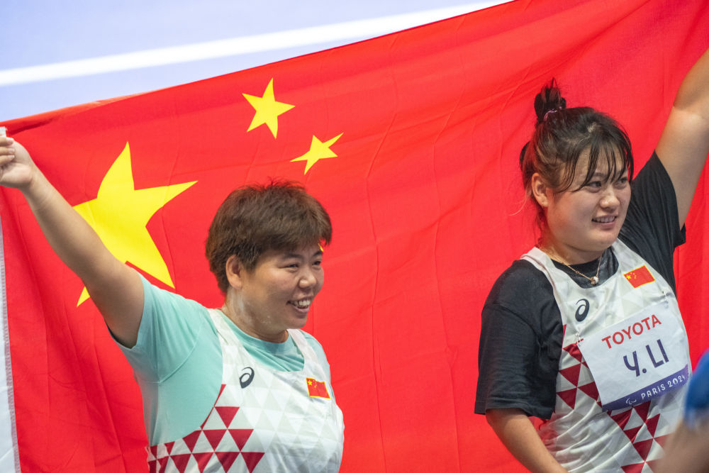 女子鉛球F37級(jí)比賽中,兩名中國選手閃耀全場。李英粒和米娜在第二投分別投出13米45和13米19的成績,以較大優(yōu)勢包攬?jiān)擁?xiàng)目的冠、亞軍?!昂芨吲d能贏得金牌,但我還是有點(diǎn)小失望,沒有創(chuàng)下個(gè)人最好成績,期待下次再突破一些。”26歲的李英粒說。