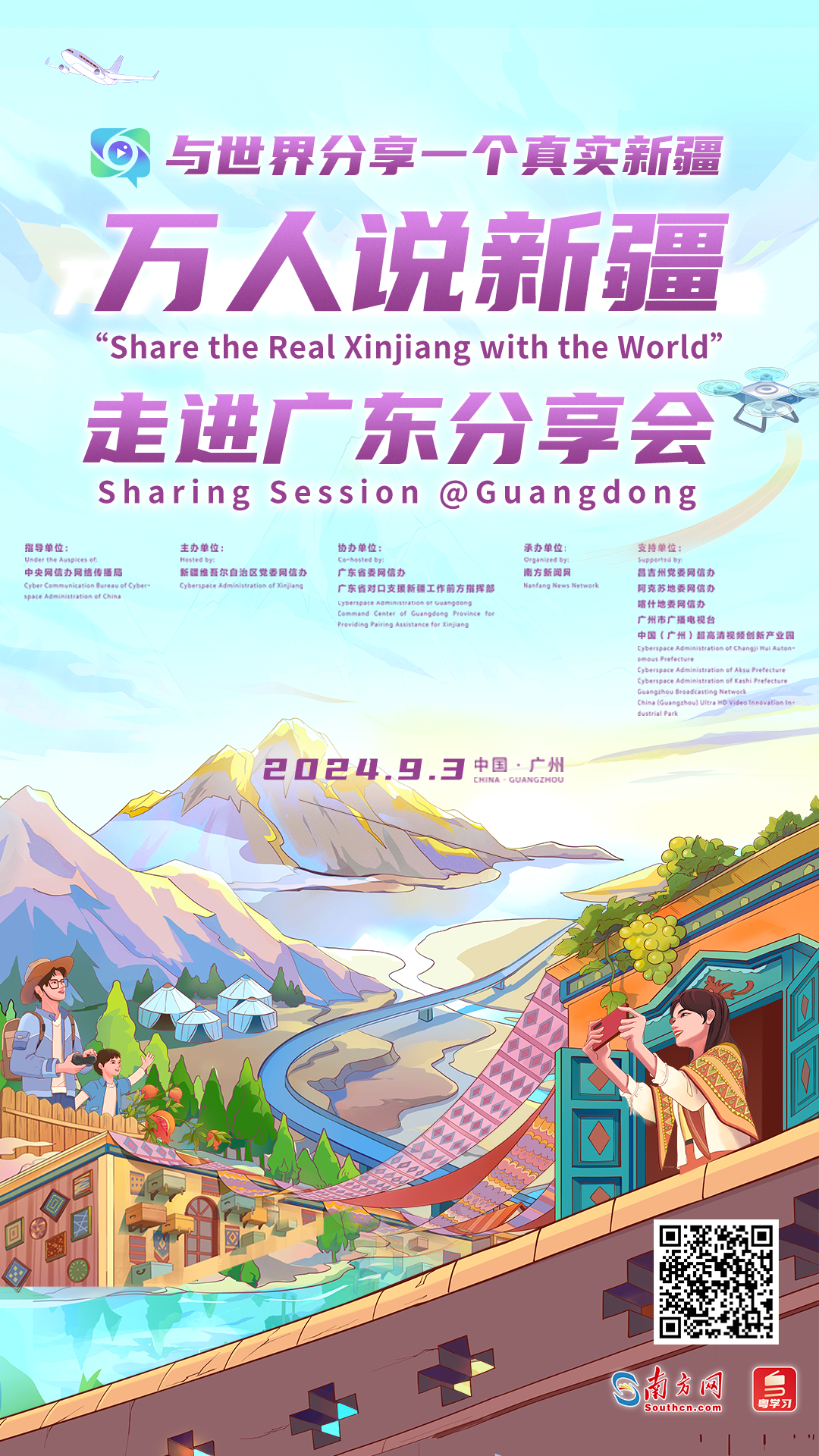 在交流互鑒中把新疆溫柔地說與全世界,在新粵兩地合作中感悟跨“粵”千里的援疆故事?!叭f人說新疆”走進(jìn)廣東分享會(huì)將于9月2日至3日在廣州舉行。此次活動(dòng)由新疆維吾爾自治區(qū)黨委網(wǎng)信辦主辦,廣東省委網(wǎng)信辦、廣東省對(duì)口支援新疆工作前方指揮部協(xié)辦,南方新聞網(wǎng)承辦。分享會(huì)從國內(nèi)知名學(xué)者、外籍專家、海內(nèi)外博主、援疆干部、港澳青年等不同視角,講述有溫度、有情懷、接地氣的美好新疆故事。