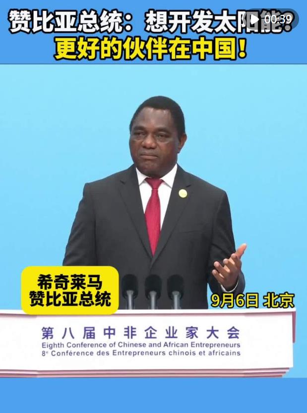 贊比亞總統(tǒng)希奇萊馬6日在第八屆中非企業(yè)家大會(huì)開幕式上稱贊中國技術(shù),呼吁非中企業(yè)加強(qiáng)技術(shù)合作。誰是更好的能源領(lǐng)域合作伙伴?誰能提供最好的太陽能發(fā)電技術(shù)?他告訴非洲企業(yè)家:“那就是你們的中國同行!”