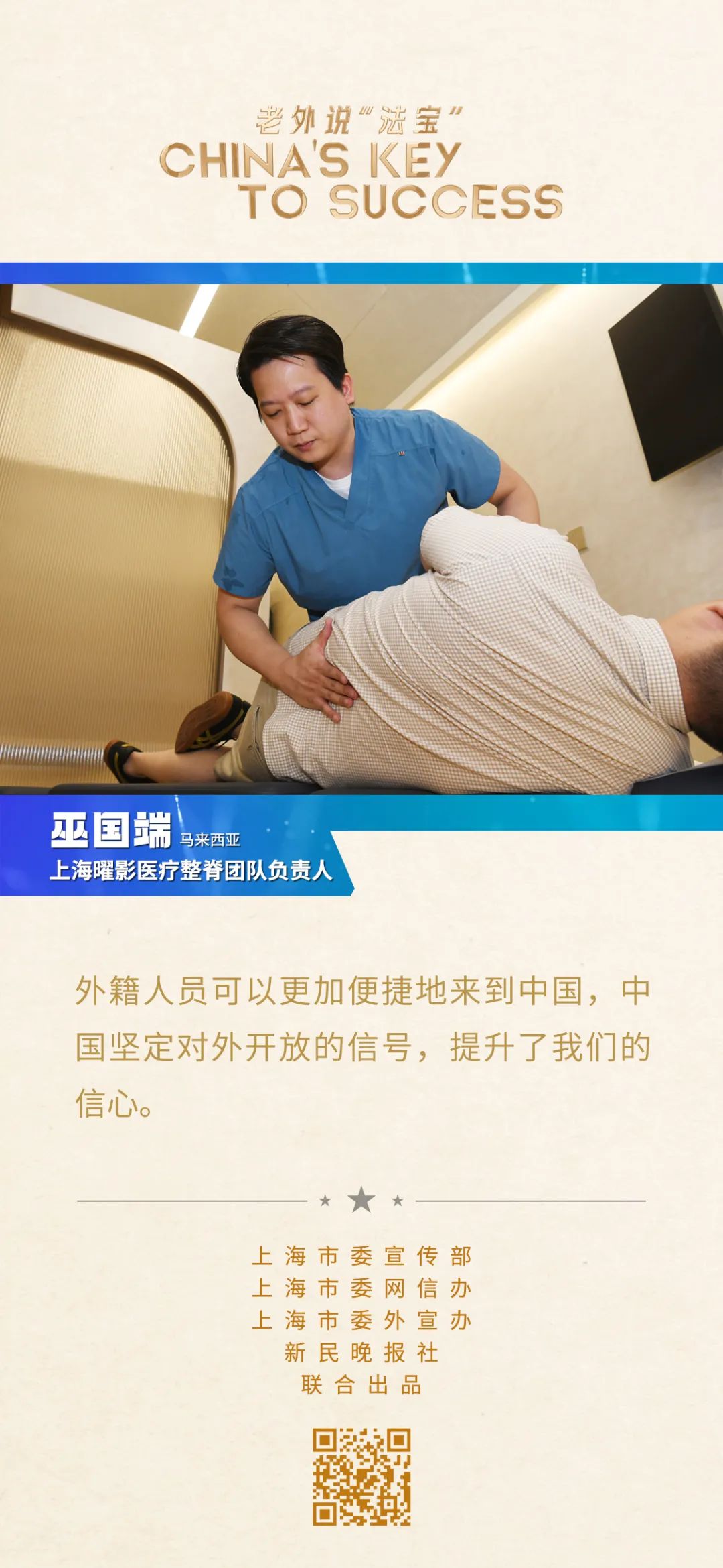 馬來西亞人巫國端是上海曜影醫(yī)療整脊團(tuán)隊負(fù)責(zé)人。2014年,他只身來到上海從事醫(yī)療工作,今年是他在這座城市的第十個年頭。