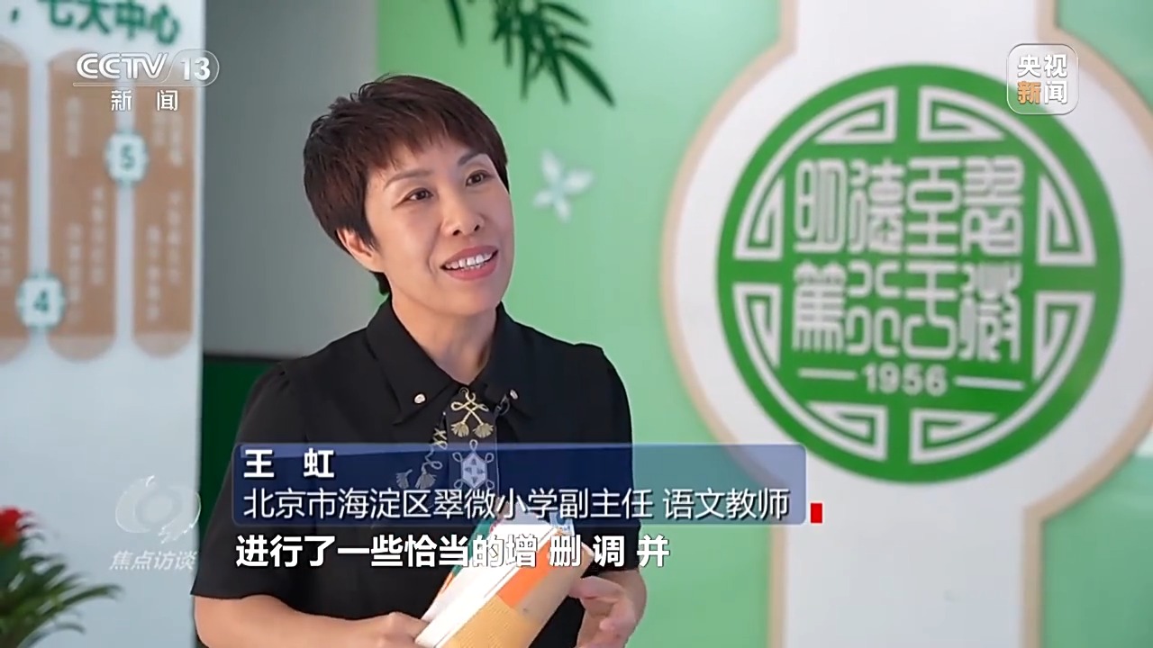 北京市海淀區(qū)翠微小學副主任、語文教師 王虹:拿到教材,我們心里特別踏實,我們發(fā)現(xiàn)這個教材進行了一些恰當?shù)脑?、刪、調(diào)、并。一年級上學期識字量上原來是300個,現(xiàn)在280個,還有一些對學生理解起來有一些難度的課文,也進行了刪減或者調(diào)整。