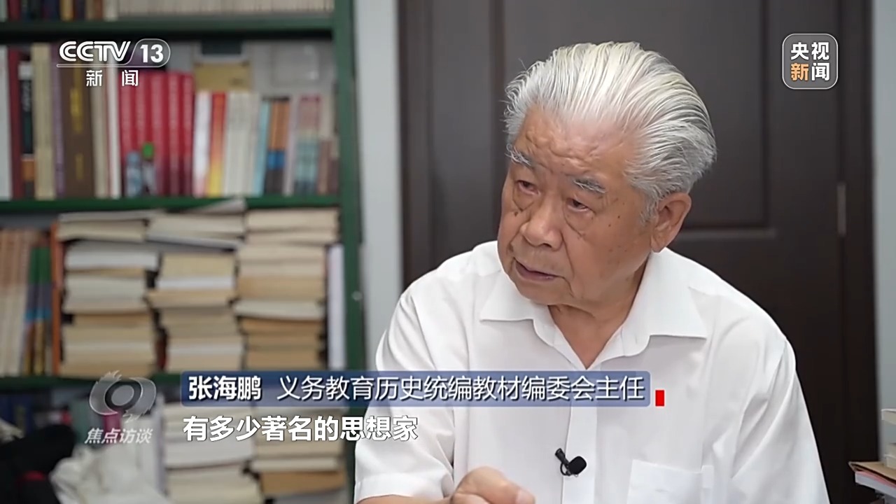 義務(wù)教育歷史統(tǒng)編教材編委會主任 張海鵬:講我們中國歷史上每一代有多少著名的思想家,有多少著名的政治家、軍事家、戰(zhàn)略家、科學家,對人類有貢獻的發(fā)明創(chuàng)造、文學藝術(shù)。這就是告訴我們,中華的文化是優(yōu)秀的,是值得我們熱愛的。