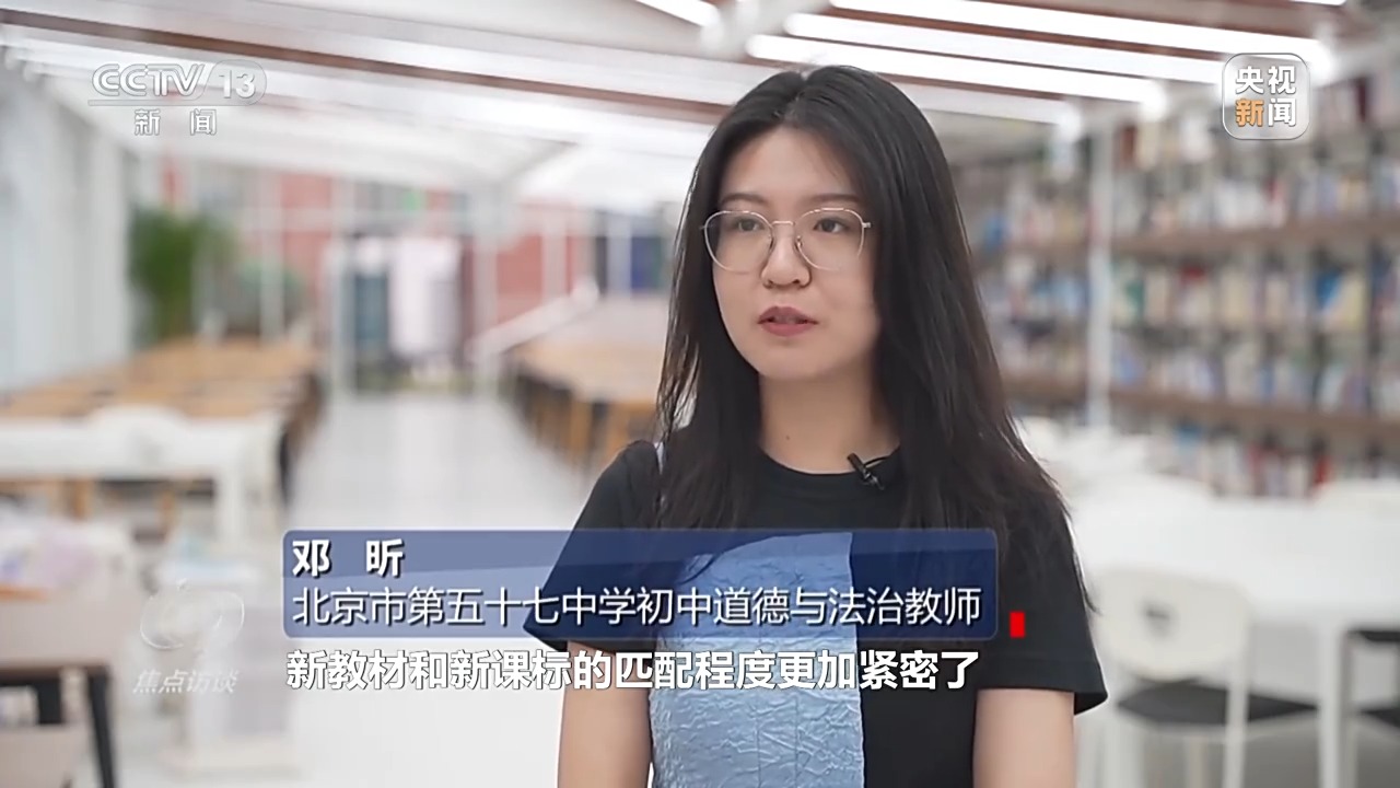 北京市第五十七中學初中道德與法治教師 鄧昕:新教材和新課標的匹配程度更加緊密了,突出了核心素養(yǎng)里的重視實踐這個環(huán)節(jié),讓學生們從理論課堂走到社會實踐。