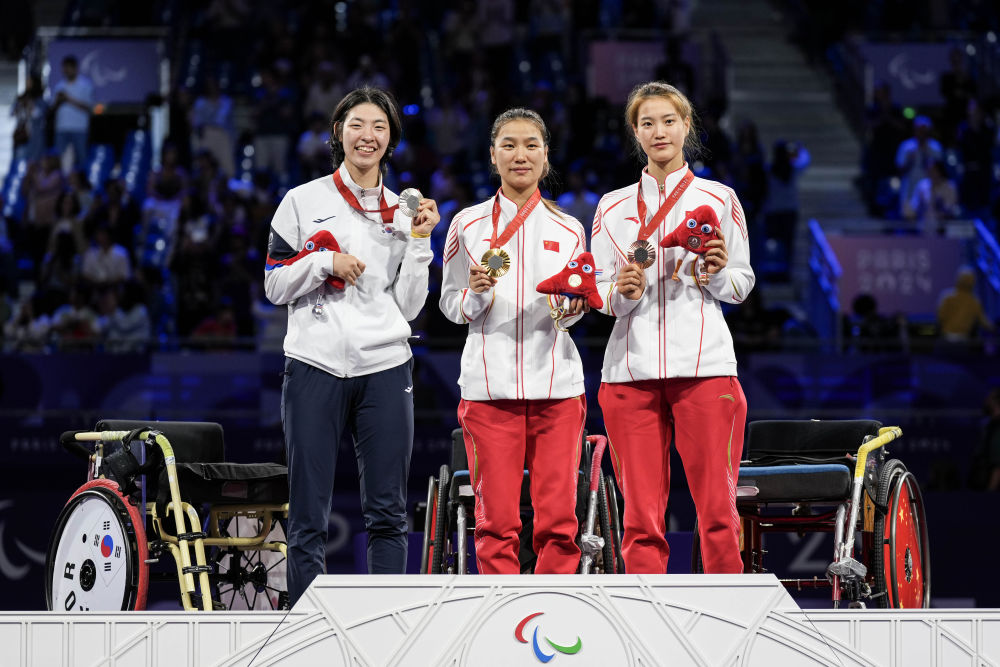 輪椅擊劍賽場(chǎng)迎來(lái)男、女重劍個(gè)人項(xiàng)目的對(duì)決。在男子重劍個(gè)人A級(jí)比賽中,孫剛憑借穩(wěn)健發(fā)揮,以15:12擊敗英國(guó)選手皮爾斯·吉利威爾,贏得金牌。陳遠(yuǎn)東在女子重劍個(gè)人A級(jí)比賽中技?jí)喝悍?,?5:6輕取韓國(guó)選手權(quán)孝敬奪冠。