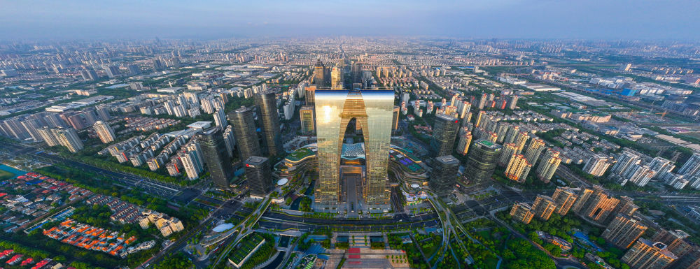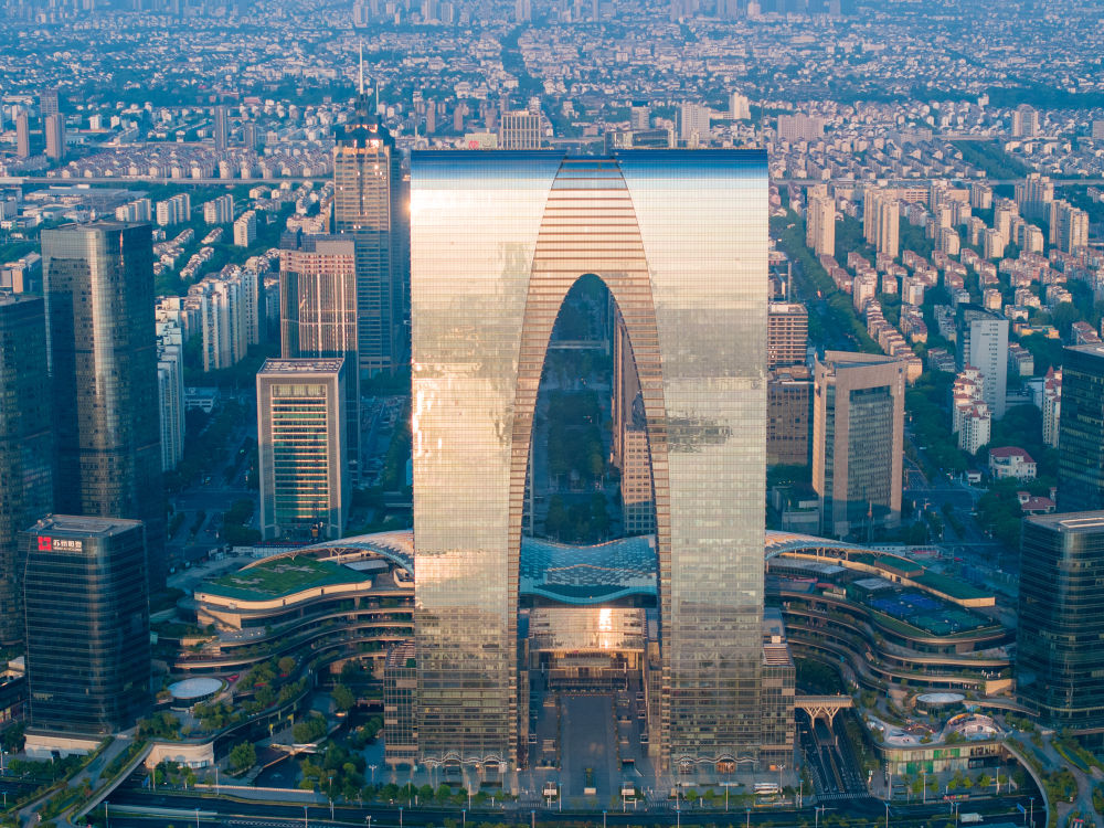 這是8月30日無(wú)人機(jī)拍攝的蘇州工業(yè)園區(qū)東方之門(mén)。