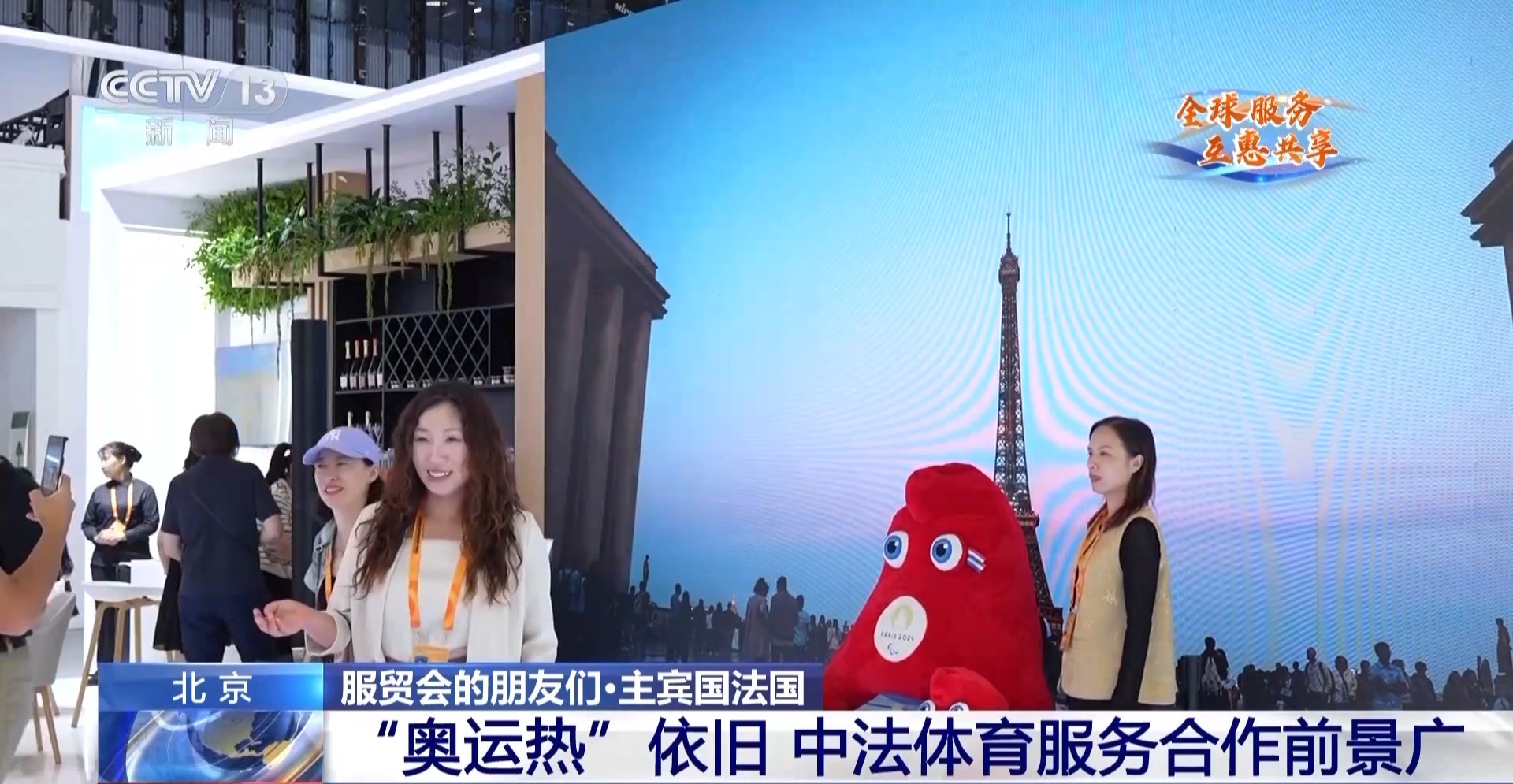 此次參會(huì),法國(guó)國(guó)家館設(shè)計(jì)了三大主題的展示和活動(dòng),體育是其中之一。記者在現(xiàn)場(chǎng)發(fā)現(xiàn),奧運(yùn)五環(huán)、巴黎奧運(yùn)會(huì)吉祥物“弗里熱”等元素依舊吸引了不少觀眾打卡拍照。娛樂(lè)文化與體育服務(wù)是服務(wù)貿(mào)易的重要領(lǐng)域。在本屆服貿(mào)會(huì)上,一些法國(guó)參展商也在尋求體育服務(wù)相關(guān)合作機(jī)會(huì)。