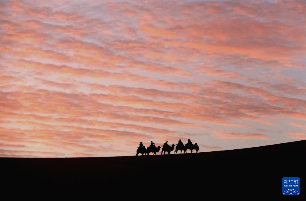 9月16日,游客在甘肅省敦煌市鳴沙山月牙泉景區(qū)游覽。