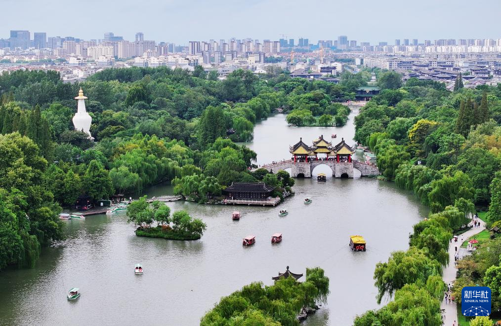 9月17日,游客在江蘇揚(yáng)州瘦西湖風(fēng)景區(qū)游玩(無人機(jī)照片)。