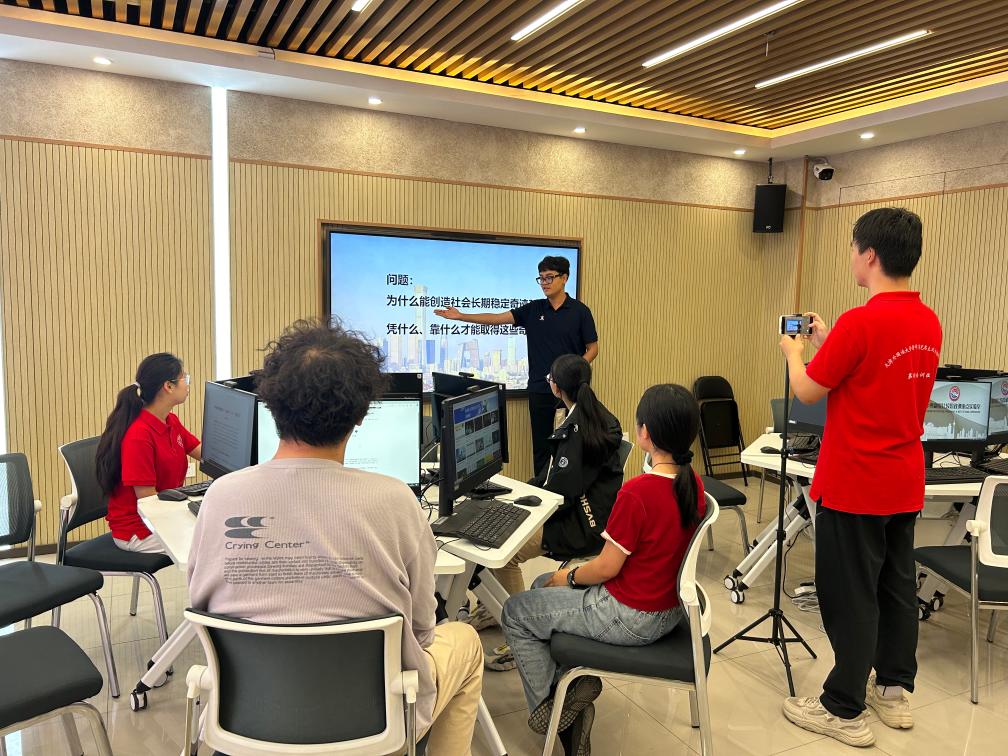 在這處思政課的“實驗室”里,學生們在教師的引導下,自己動手搜集案例、分析整理素材,在“做實驗”的過程中得出研究結(jié)論。青年教師葉光宇介紹,思政課教材中的內(nèi)容通過圖片、視頻等方式生動呈現(xiàn),教學內(nèi)容和教學方式也更加鮮活,師生間的互動交流進一步增強。
