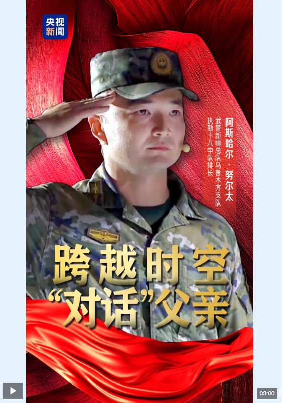 21日晚《把青春華章寫在祖國大地上》大思政課網(wǎng)絡(luò)主題活動現(xiàn)場,投筆從戎的南開學子阿斯哈爾 · 努爾太,通過AI技術(shù)穿越時空與父親對話。阿斯哈爾獻給父親的一個軍禮,令無數(shù)人動容。
