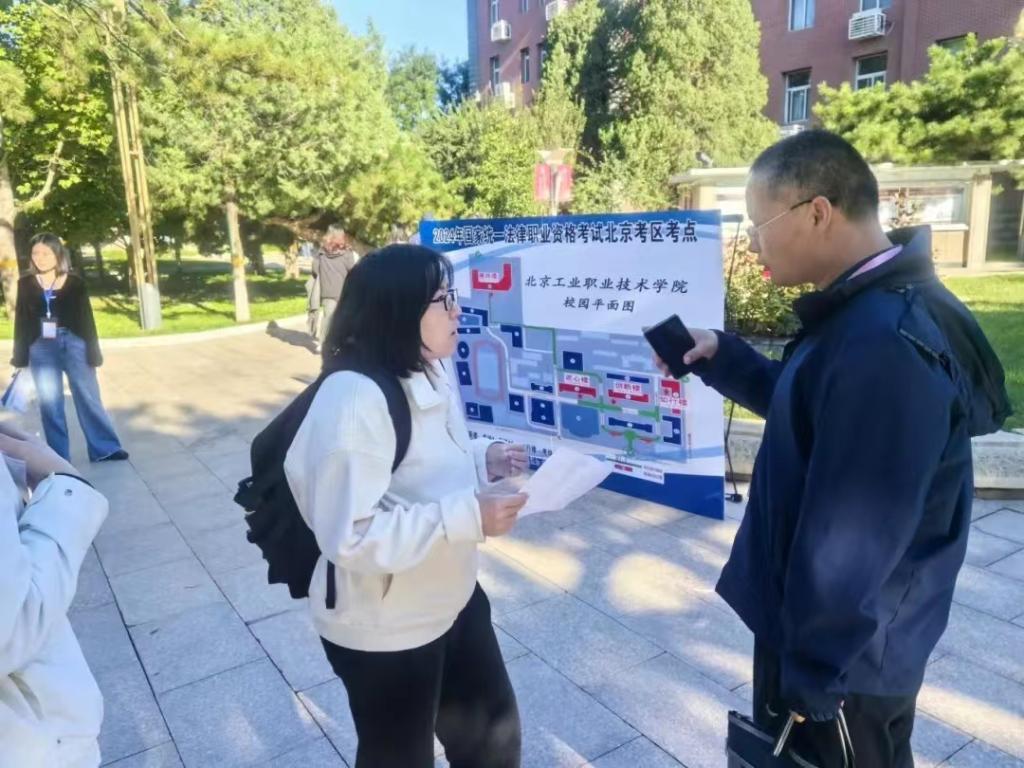 9月21日,考生經(jīng)過(guò)身份核驗(yàn)進(jìn)入2024年法考北京考區(qū)考點(diǎn)。(北京市司法局供圖)