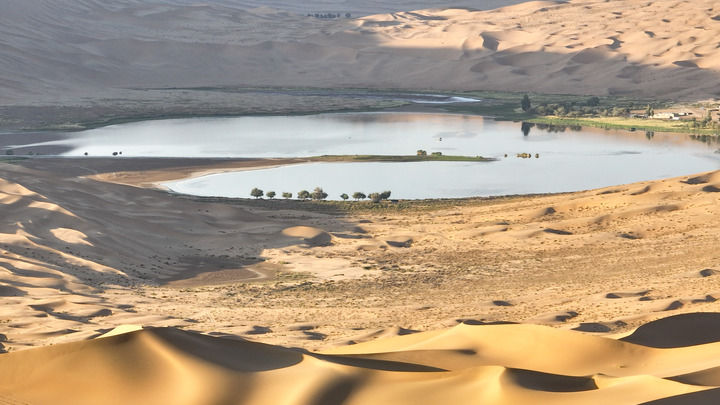 聯(lián)合國教科文組織世界遺產(chǎn)委員會認為:“巴丹吉林沙漠—沙山湖泊群獨特、稀有、絕妙的高大沙山,以及無數(shù)色彩斑斕的丘間湖泊,是溫帶和超干旱氣候下沙漠景觀和地貌持續(xù)演變的杰出范例,也是全球范圍內具有罕見自然美的沙漠景觀之一?!?/p>