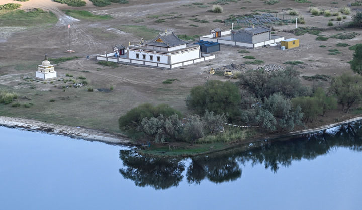 驅車深入巴丹吉林沙漠,翻過數(shù)不盡的沙丘,來到水草豐美的廟海子。這里四面環(huán)沙山,一座200多年前的白墻金頂寺廟坐落在湖邊,為雄渾壯闊的自然景象抹上一筆濃厚人文氣息。觀者無不感嘆,當年交通不便,如何在沙漠腹地建成如此精美的建筑。