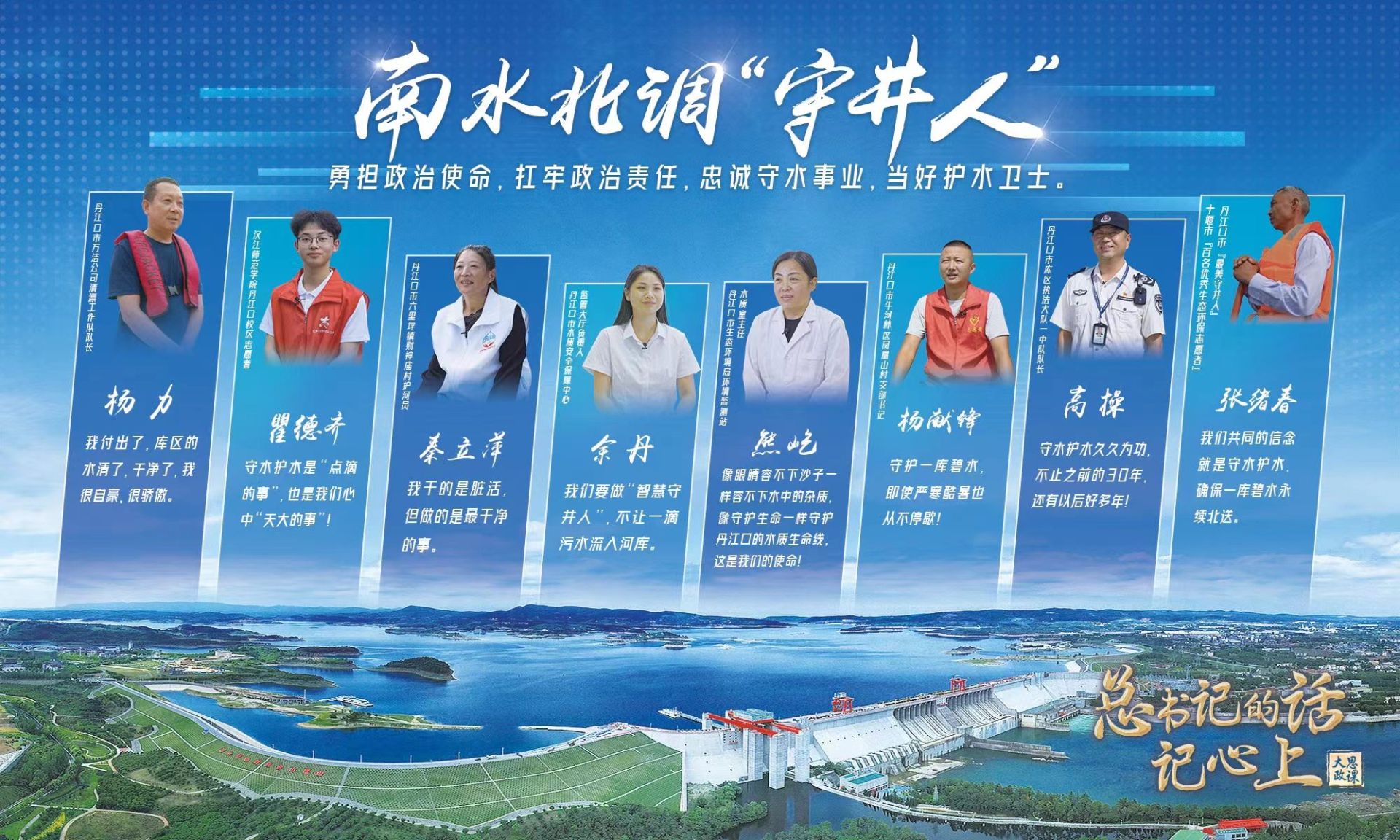 以前是漁民現在是清漂隊員的張旭春,十年守護重要入庫河流的護水員秦立萍,二十四小時在線的“智慧守井人”余丹,巡庫三十年的庫區(qū)執(zhí)法隊隊長高操……在這塊土地上,他們把水看得比自己的生命還重要。