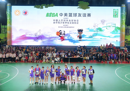 美國(guó)青少年球員在“村BA”球場(chǎng)合影。(供圖:貴州省文化和旅游廳)