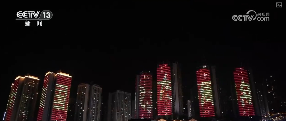 在重慶市奉節(jié)縣、永川區(qū)等地,紛紛利用城市樓宇開啟國慶燈光秀。變換多彩的燈光和圖案,將建筑物裝點得美輪美奐,營造出祥和喜慶的節(jié)日氛圍。