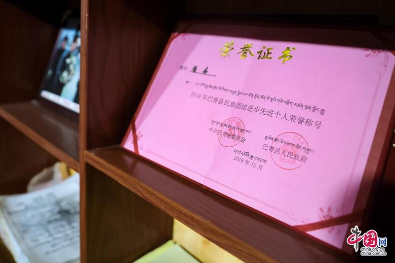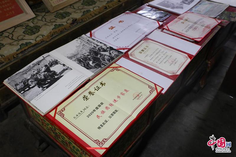 “記憶里的珍珠”紅色收藏紀念館創(chuàng)辦人扎西達杰所獲榮譽證書。中國網(wǎng)記者鄭偉攝