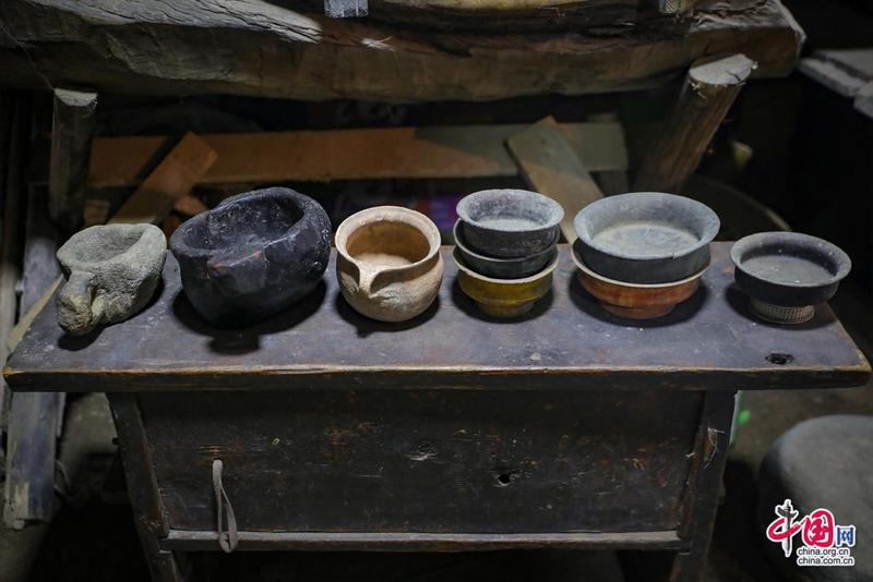 “記憶里的珍珠”紅色收藏紀念館內(nèi)景·藏式碗具。中國網(wǎng)記者鄭偉攝