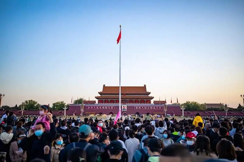 來(lái)自全國(guó)各地的觀眾聚集于天安門(mén)廣場(chǎng)