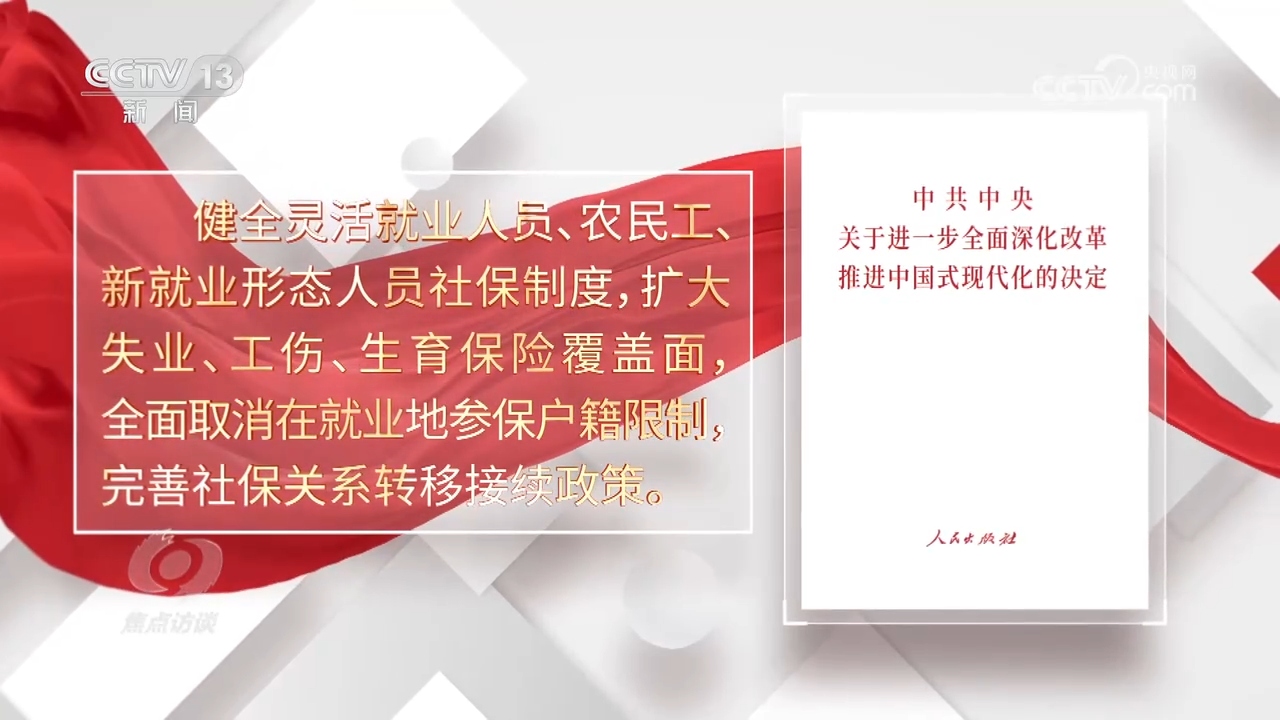 今天節(jié)目繼續(xù)聚焦“開辟中國式現(xiàn)代化廣闊前景”。我們的目標(biāo)很宏偉,也很樸素,歸根結(jié)底就是讓人民過上更好的日子。習(xí)近平總書記說,孩子的撫養(yǎng)教育,年輕人的就業(yè)成才,老年人的就醫(yī)養(yǎng)老,是家事也是國事。的確,中國式現(xiàn)代化民生為大。黨和國家是把這些事放在心上的。黨的十八大以來,我國建成世界上規(guī)模最大的醫(yī)療衛(wèi)生體系,全國各級教育普及程度達(dá)到或超過中高收入國家平均水平,建成世界上規(guī)模最大的社會保障網(wǎng)。面對新形勢新挑戰(zhàn),社會保障也在不斷調(diào)整,發(fā)揮兜底作用。黨的二十屆三中全會圍繞“健全保障和改善民生制度體系”作出一系列重要改革部署,提出健全靈活就業(yè)人員、農(nóng)民工、新就業(yè)形態(tài)人員社保制度。這就要求面對新情況新問題,不斷探索完善符合人民群眾需要的社保體系?,F(xiàn)在,這項工作在全國多個試點(diǎn)已經(jīng)取得了成效。