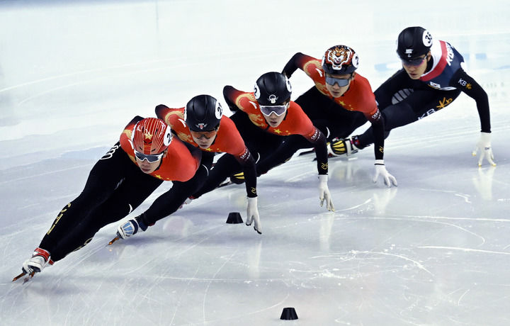 10月3日,朱祎玎、李坤、張柏浩(左一至左三)在比賽中。當(dāng)日,在2024上海超級杯短道速滑男子1000米A組決賽中,中國選手朱祎玎以1分26秒848的成績獲得冠軍,李坤和張柏浩分獲亞軍和季軍。新華社發(fā)(陳浩明攝)
