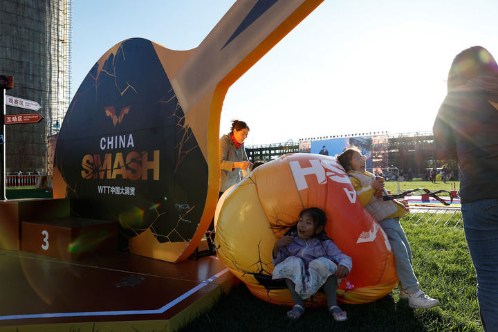 10月1日,孩子們在大滿貫公園玩耍。當(dāng)日,2024年世界乒乓球職業(yè)大聯(lián)盟(WTT)中國大滿貫比賽繼續(xù)在北京進(jìn)行。新華社記者 王麗莉 攝