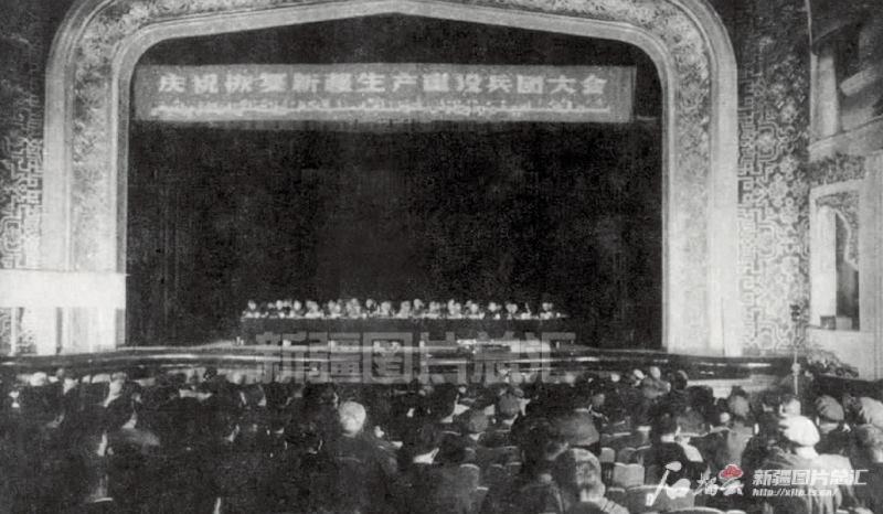 1982年6月1日,慶?;謴?fù)新疆生產(chǎn)建設(shè)兵團(tuán)大會在烏魯木齊舉行。新疆圖片總匯資料圖片