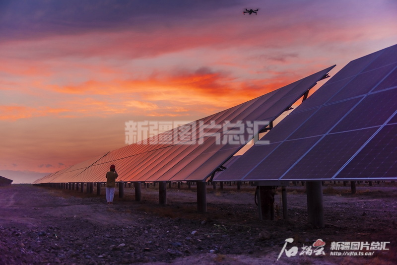 2024年8月20日,新疆生產(chǎn)建設(shè)兵團(tuán)第七師124團(tuán)10萬千瓦光伏發(fā)電項目建設(shè)現(xiàn)場,工人在檢查光伏板。田國建攝