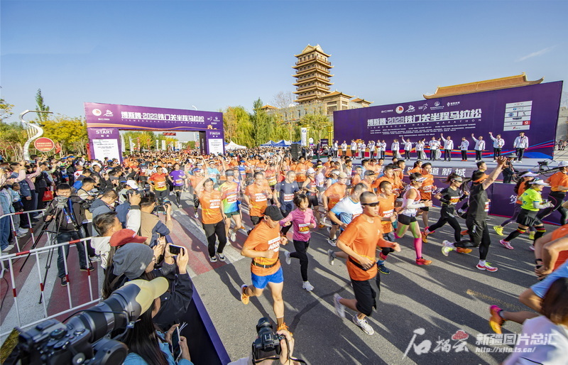 2023年10月15日,博斯騰·2023鐵門關(guān)半程馬拉松在新疆生產(chǎn)建設(shè)兵團(tuán)第二師絲路雄關(guān)景區(qū)鳴槍開賽。李嘉成攝