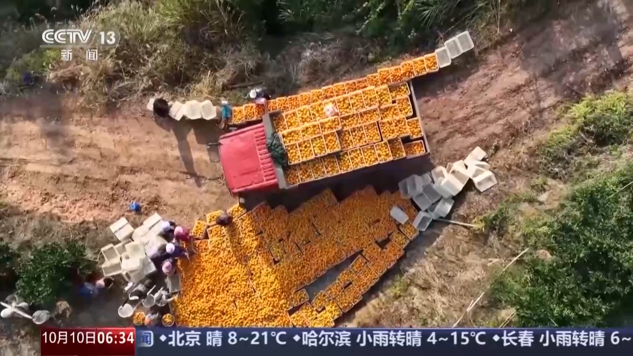贛南臍橙是江西贛州重要的地理標(biāo)志產(chǎn)品,近期,贛州市于都縣2萬(wàn)畝早熟臍橙陸續(xù)掛果成熟,工人在果園集中采摘,一派豐收景象。