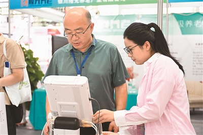 2024寧夏養(yǎng)老服務(wù)業(yè)博覽會近日在寧夏銀川市舉辦。本屆博覽會集中展示國內(nèi)外養(yǎng)老服務(wù)前沿科技和最新成果,推動健康養(yǎng)老產(chǎn)業(yè)向更深層次、更寬領(lǐng)域、更全方位發(fā)展。圖為會上工作人員向參觀者介紹醫(yī)療產(chǎn)品。新華社記者 毛 竹攝