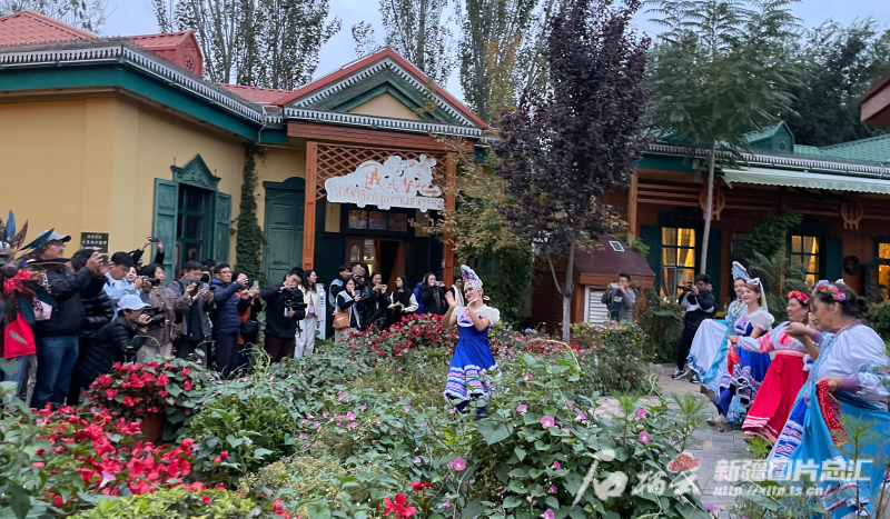 六星街位于伊寧市西北側(cè),3條道路在中心點交錯并輻射出6條主干道,形成了一個獨具特色的六邊形街區(qū),被稱為“六星街”。外媒代表走進俄羅斯風(fēng)情園,一群身著傳統(tǒng)服飾的人正歡快地跳著舞,每一個動作都傳遞出快樂因子,感染大家一同舞起來。