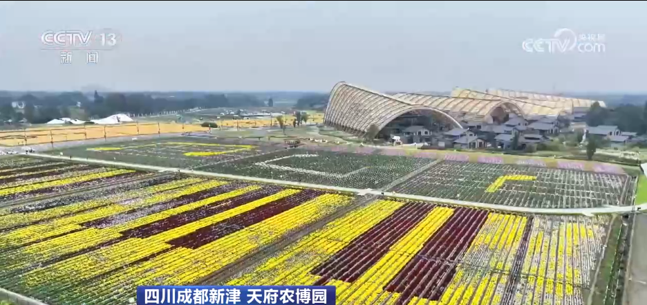 四川成都新津天府農(nóng)博園里,紫黑、紫紅、金黃三種特種稻種和大田水稻一起組成多彩圖案和造型,每畝預(yù)計產(chǎn)量躍上800斤的新高。稻田邊創(chuàng)意涌動,一杯杯稻田咖啡香醇四溢,一朵朵葵花正在向陽綻放,悠然演奏著喜悅豐收的“大地樂章”。