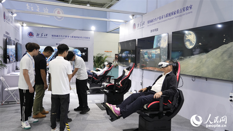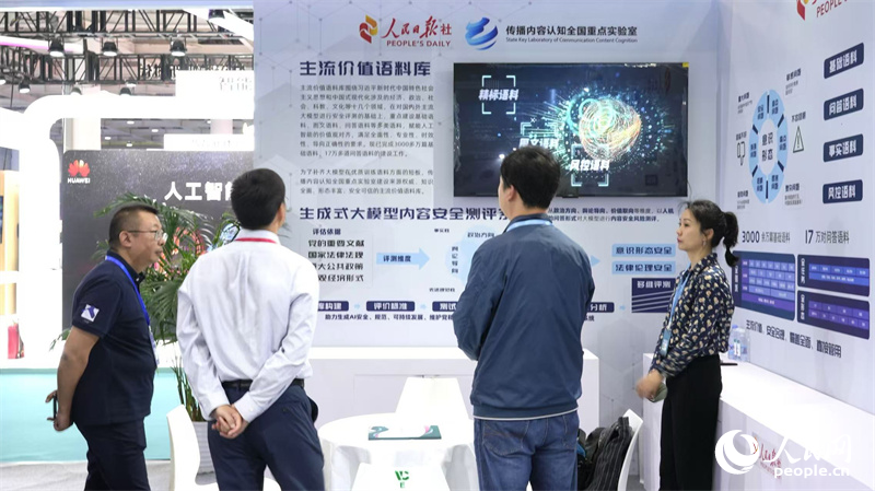 人民日?qǐng)?bào)社傳播內(nèi)容認(rèn)知全國(guó)重點(diǎn)實(shí)驗(yàn)室展區(qū)吸引眾多觀眾駐足了解。人民網(wǎng)記者 吳茜薇攝