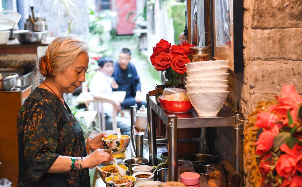 現(xiàn)在周英碧在山城巷經營著一家小吃店,旺季時每天能接待上百個客人。她最喜歡的事就是閑時和游客“擺擺龍門陣”,給他們講一講山城巷的故事。