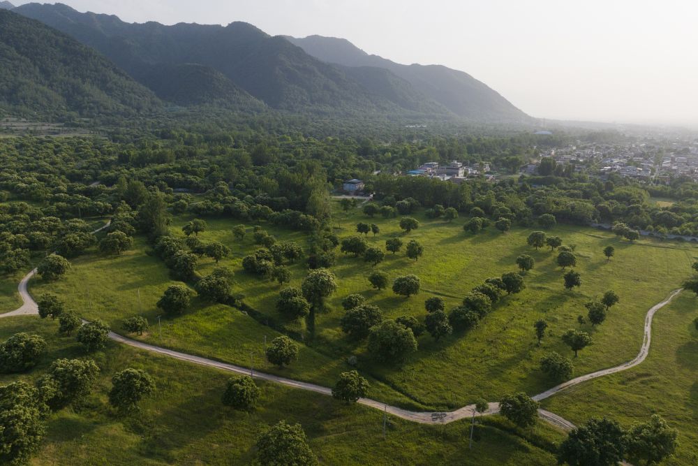 西安市長(zhǎng)安區(qū)子午街道南豆角村的板栗古樹(shù)群(2024年5月15日攝,無(wú)人機(jī)照片)。新華社記者 邵瑞 攝