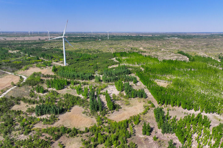 內(nèi)蒙古自治區(qū)通遼市科爾沁左翼后旗,依托三北防護(hù)林體系建設(shè)、退耕還林、退牧還草等國(guó)家重點(diǎn)生態(tài)工程,讓科爾沁沙地加速披綠。