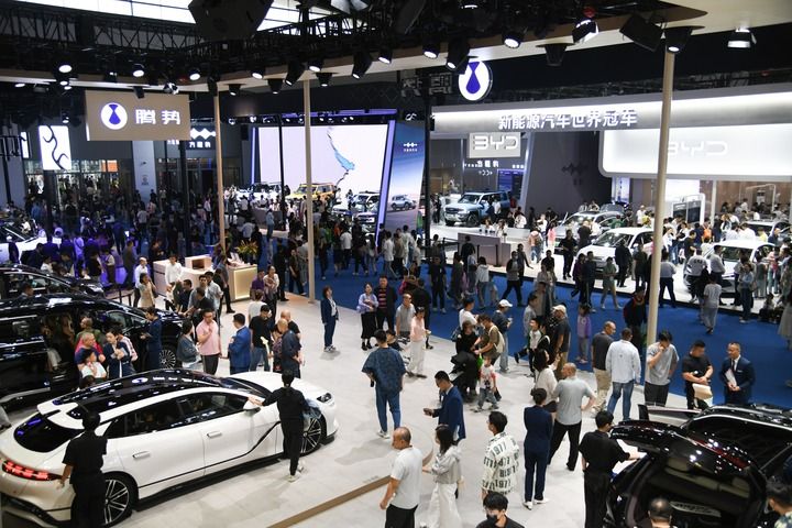 2024年10月1日,參觀者在2024第十九屆西安國(guó)際車(chē)展參觀新能源汽車(chē)。新華社記者 張博文 攝