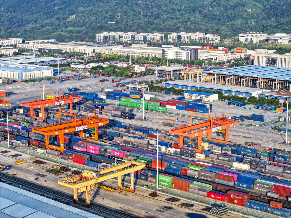 重慶國際物流樞紐園區(qū)包含團結(jié)村中心站、西部陸海新通道重慶無水港、重慶鐵路口岸等片區(qū),是中歐班列始發(fā)地、西部陸海新通道策源地,目前已開通班列線路62條,通達全球125個國家和地區(qū)的542個港口,成為我國南向西向高水平對外開放的重要樞紐。