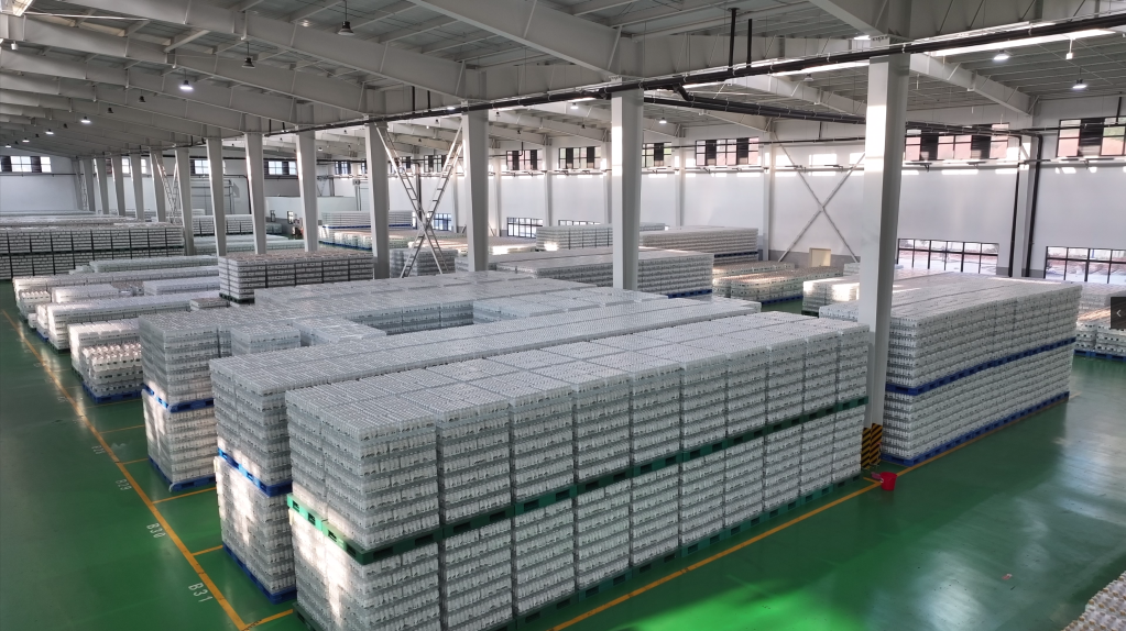 2024年10月30日拍攝的丹江口武當(dāng)山水飲料有限公司倉庫。(王世霖 攝)