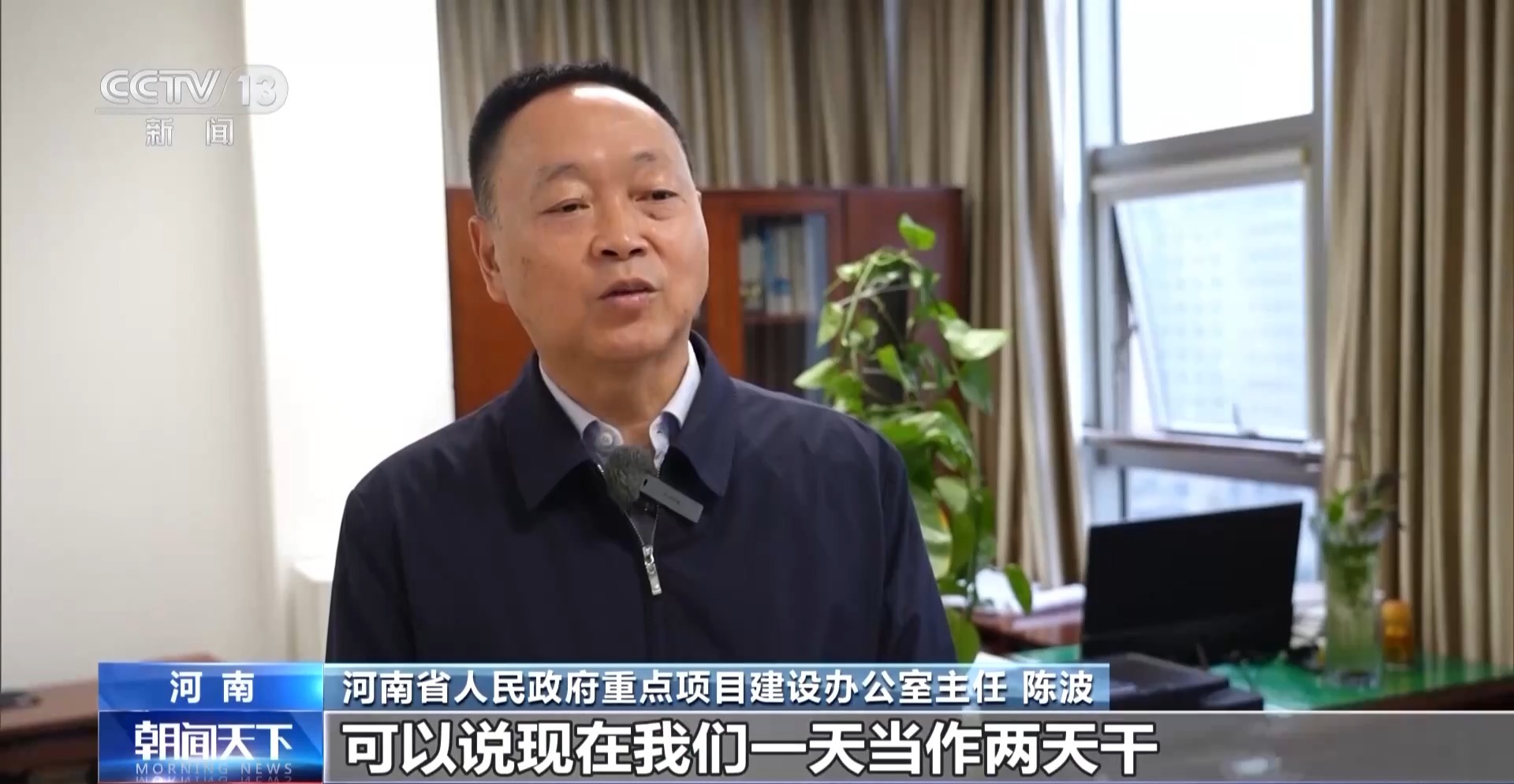 河南省人民政府重點(diǎn)項(xiàng)目建設(shè)辦公室主任 陳波:時(shí)間緊任務(wù)重,我們一天當(dāng)做兩天干,項(xiàng)目工作不停轉(zhuǎn),開(kāi)展全省重大項(xiàng)目集中攻堅(jiān)、現(xiàn)場(chǎng)勘查等一系列活動(dòng)。