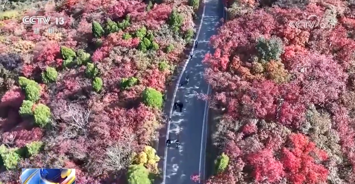 央視網(wǎng)消息:山明水凈夜來霜,數(shù)樹深紅出淺黃。這段時間,山東淄博市的一些景區(qū)和村莊迎來紅葉最佳觀賞期,市民、游客漫步紅葉林,感受秋天的美好意境。