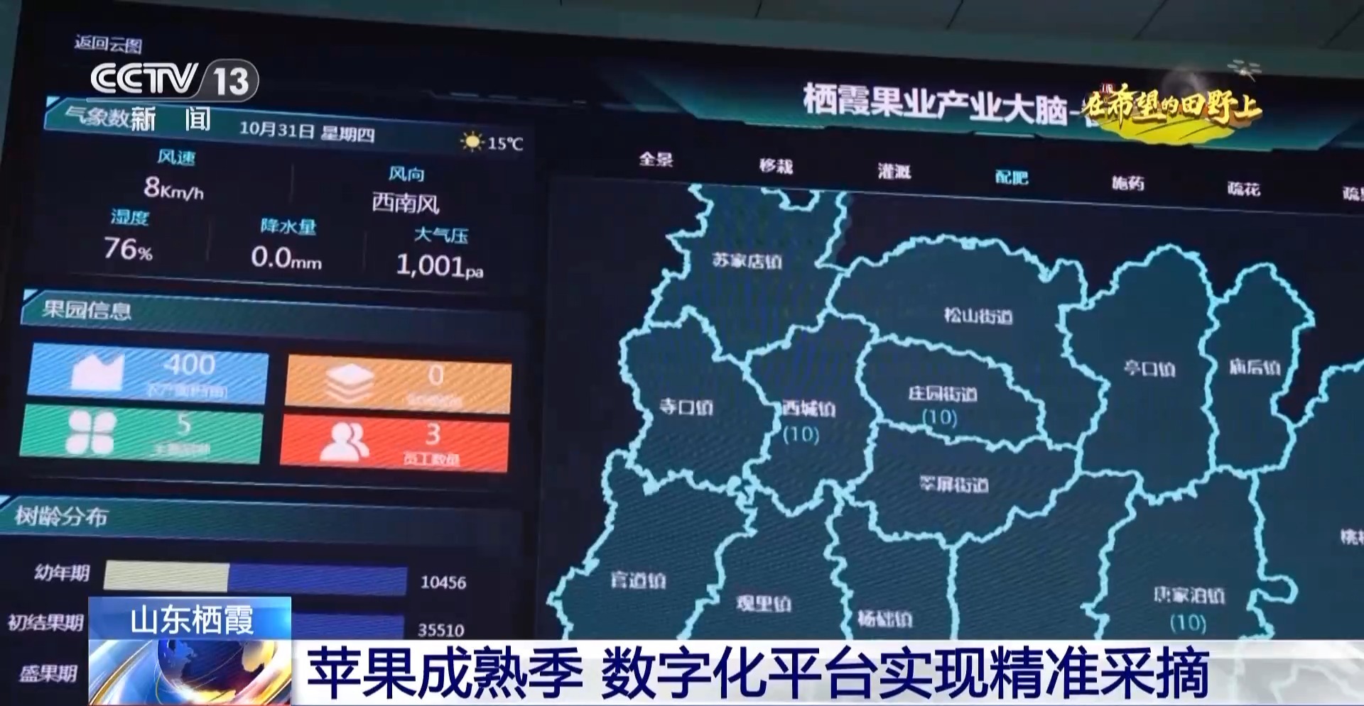 棲霞市供銷合作社聯(lián)合社負(fù)責(zé)人 李國勇:通過這個大屏,我們可以清楚地看到果樹的生長情況,平臺也會將果樹生長情況相關(guān)信息通報給果農(nóng)進(jìn)行精準(zhǔn)采摘。