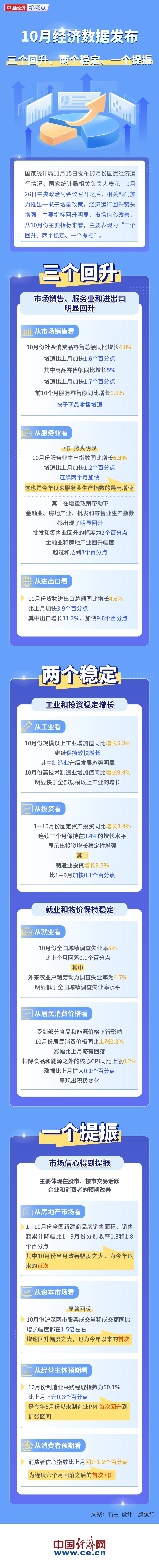 【圖解】10月經(jīng)濟(jì)數(shù)據(jù)發(fā)布:三個回升、兩個穩(wěn)定、一個提振